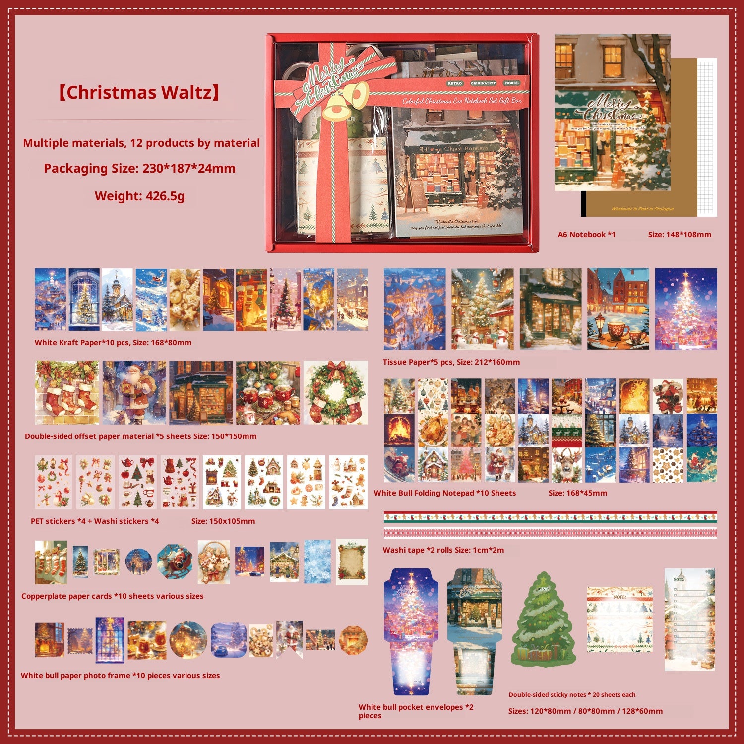 Christmas Eve DIY Journal Gift Box-Washi Tape, Stickers, and Material Paper