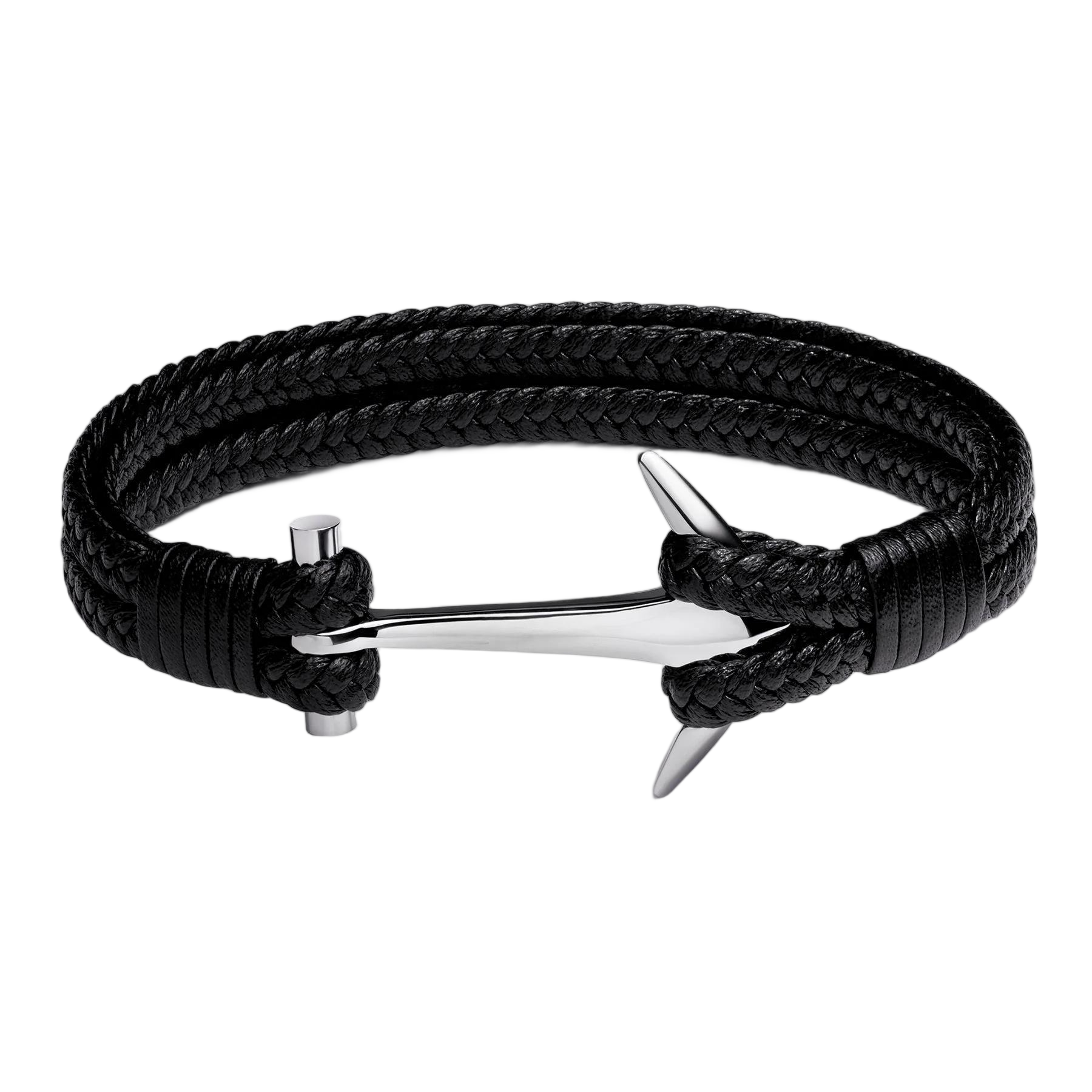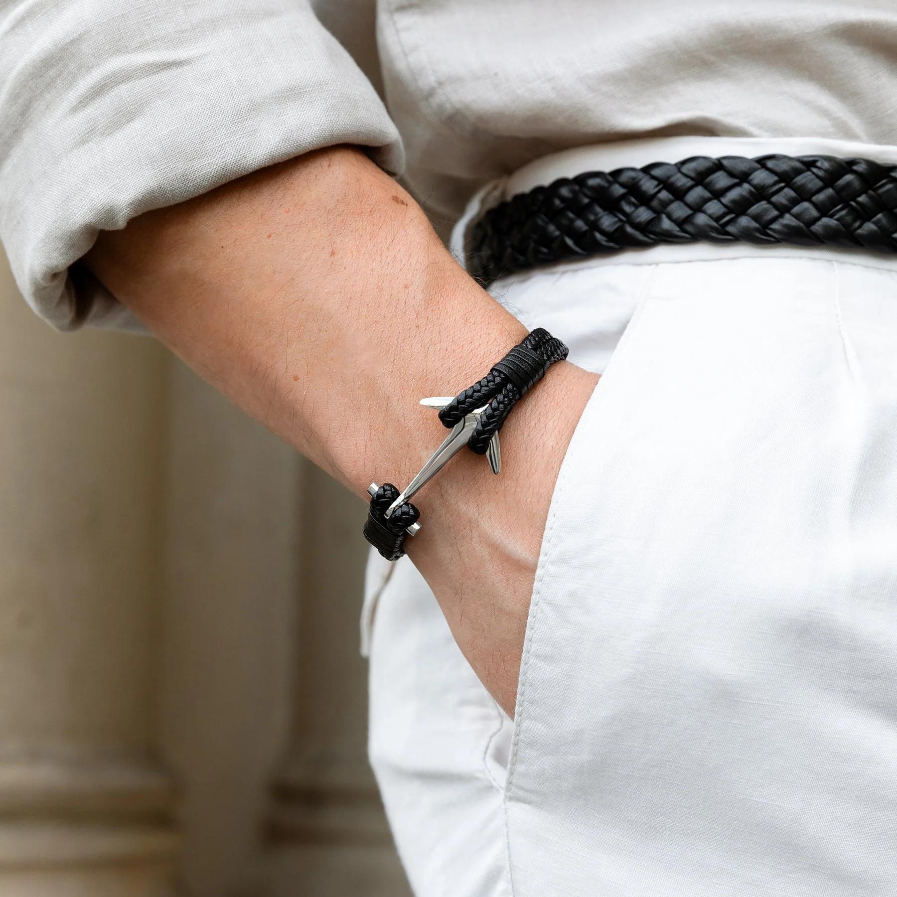 The Anchor Leather Duo bracelet is crafted from double-braided, full grain leather and a silver-plated, 316L marine grade stainless steel anchor clasp closure.